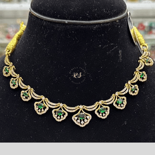 This stunning green mozonite set is a perfect blend of tradition and style. The mozonite stones shine like real diamonds, while the green touch gives it a refreshing, royal finish. The detailed craftsmanship adds charm and makes it perfect for festive occasions, weddings, or family events.