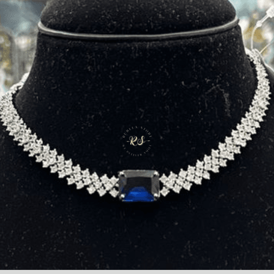 The Real Look Diamond Set with Blue Colour gives you the glow of diamonds and the charm of blue — all in one design.