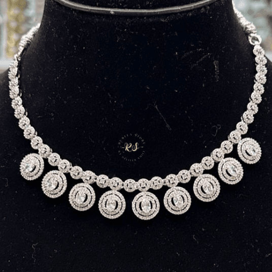 Shine with unmatched elegance in the Beautiful Red American Diamond Necklace from Rubela Store. Designed with premium precision-cut stones and luxurious plating, this lightweight and stunning piece is perfect for weddings, parties, and festive occasions. A timeless jewel that adds glamour and brilliance to every outfit.