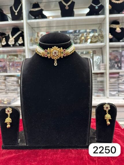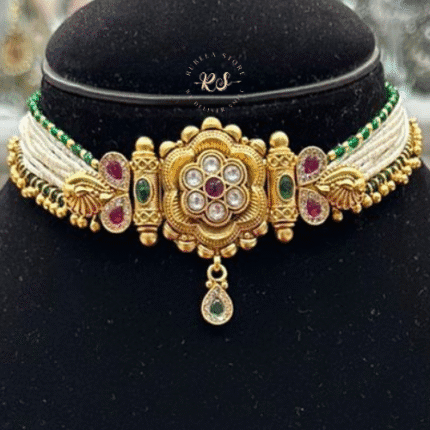 Bring elegance to your style with the Real Look Green Mala Set from Rubela Store. Designed with premium quality finish, this set looks like real gold jewellery. Perfect for weddings, parties, and festive wear. Affordable, classy, and a must-have addition to your collection.