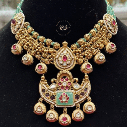 The Real Look Heritage Gold Look Pendant Set from Rubela Store is a perfect blend of tradition and style. Crafted with fine detailing, it gives a real gold feel while being affordable. Rubela Store offers premium quality jewellery for every occasion. Shop now and follow us on Instagram @storerubela.