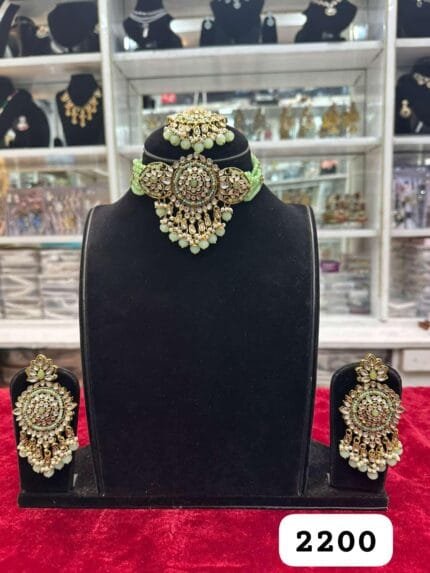 Rubela Golden Kundan Mint Choker Set – Shine with Royal Grace